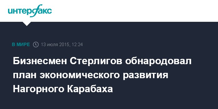 Бизнесмен Стерлигов обнародовал план экономического развития Нагорного Карабаха