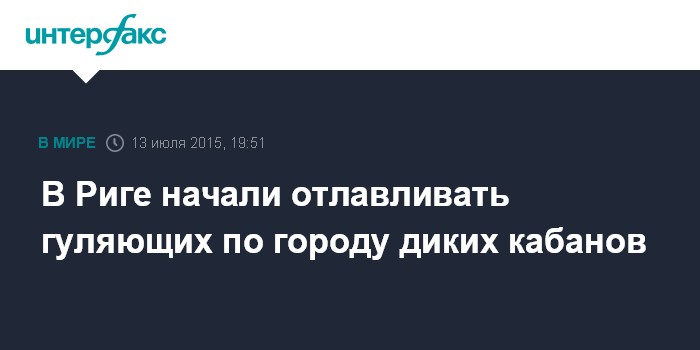 Москва. 13 июля. INTERFAX.RU - В рижском микрорайоне Межциемс в соответствии с решением Рижской думы отловлена и вывезена за город первая партия забредших сюда диких кабанов, сообщили агентству BNS в городской думе.