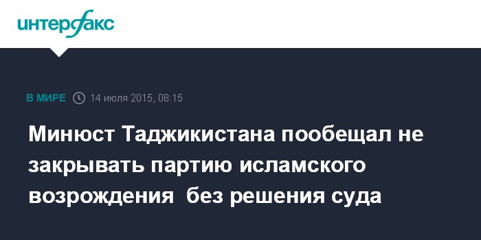 Минюст Таджикистана пообещал не закрывать партию исламского возрождения без решения суда