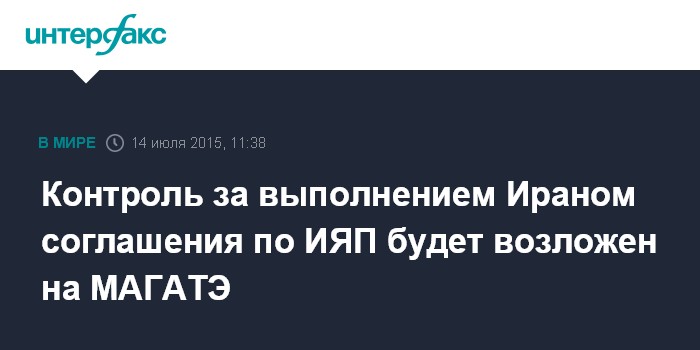 Москва. 14 июля. INTERFAX.RU - "Шестерка" и Иран договорились, что контролировать ход выполнения достигнутого соглашения по иранской ядерной программе будет МАГАТЭ.