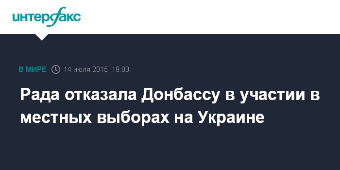 Москва. 14 июля. INTERFAX.RU - Верховная рада Украины приняла новый закон о местных выборах, который исключает участие политических блоков, а также предусматривает, что выборы не состоятся на части Донбасса.