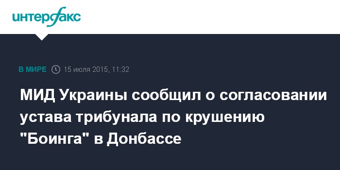Москва. 15 июля. INTERFAX.RU - Проект устава международного трибунала по привлечению к ответственности виновных в крушении малазийского "Боинга" 17 июля 2014 года на востоке Украины, который предлагают создать решением Совета безопасности ООН, уже согласован. Об этом заявил министр иностранных дел Украины Павел Климкин.
