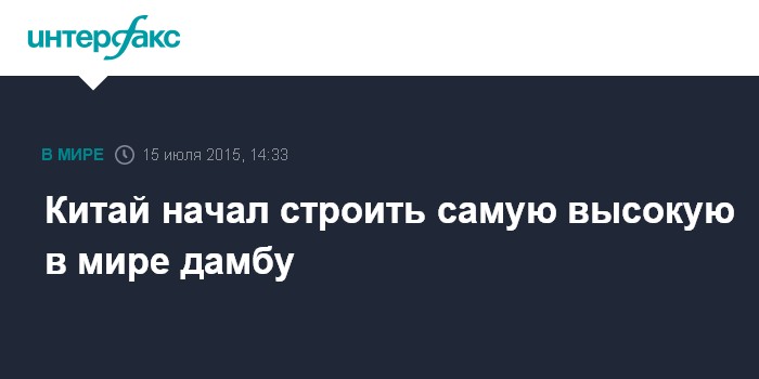 Москва. 15 июля. INTERFAX.RU - Власти Китая начали строительство дамбы высотой 314 метров, которая станет самой высокой плотиной в мире, сообщают в среду китайские СМИ.