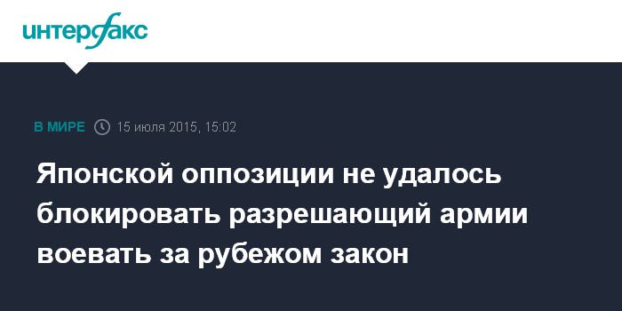Японской оппозиции не удалось блокировать разрешающий армии воевать за рубежом закон