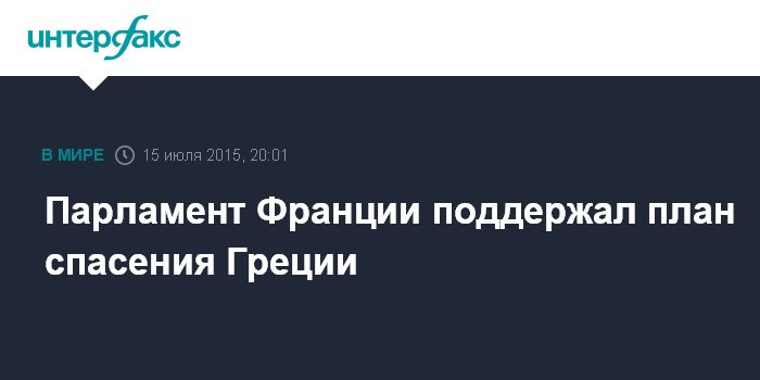 Таким образом Франция стала первой страной, которая через голосование в парламенте одобрила соглашение по выходу Греции из долгового кризиса.