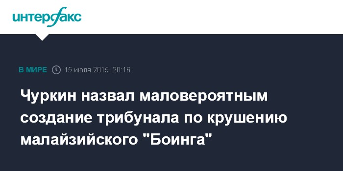 Москва. 15 июля. INTERFAX.RU - Постпред РФ при ООН Виталий Чуркин не видит перспектив принятия резолюции, учреждающей трибунал по крушению малайзийского "Боинга" на востоке Украины.