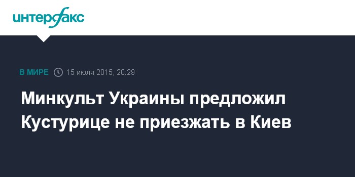 Москва. 15 июля. INTERFAX.RU - Министерство культуры Украины обратилось в МВД и СБУ относительно целесообразности участия сербского режиссера и музыканта Эмира Кустурицы в концерте, который запланирован в Киеве 28 июля.