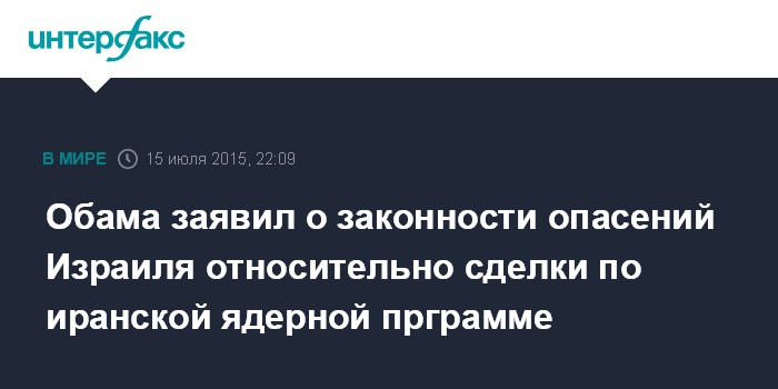 Москва. 15 июля. INTERFAX.RU - Президент США Барак Обама разделяет опасения Израиля, связанные с заключением соглашения по ИЯП с Ираном.