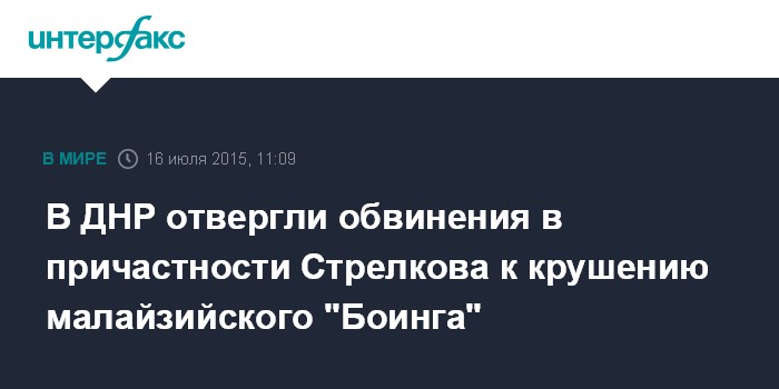 Москва. 16 июля. INTERFAX.RU - В Минобороны самопровозглашенной Донецкой народной республики считают безосновательным обвинения в адрес одного из бывших лидеров ополчения Игоря Стрелкова (Гиркина) в причастности к крушению малайзийского "Боинга".