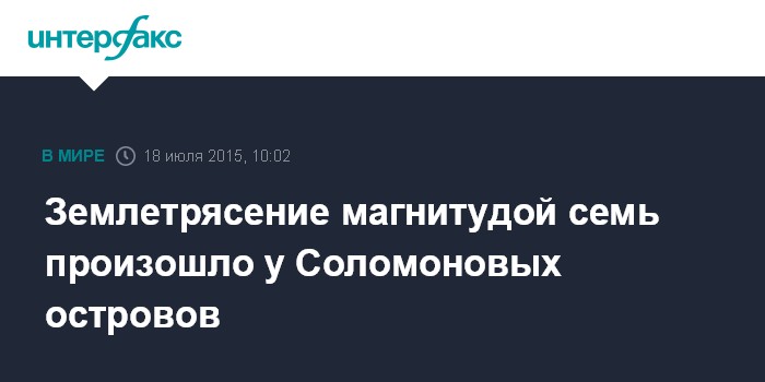 Москва. 18 июля. INTERFAX.RU - В районе Соломоновых островов в Тихом океане произошло землетрясение магнитудой семь, сообщает в субботу Геологическая служба США.