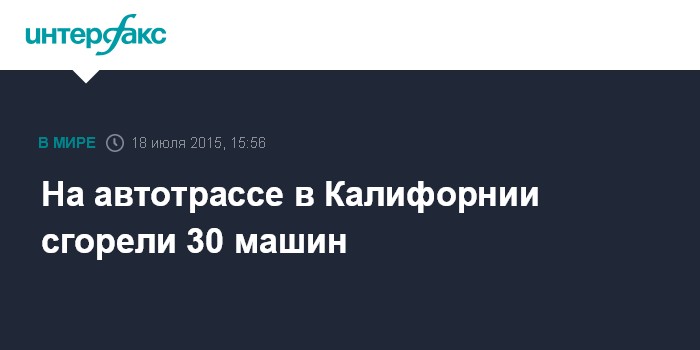Москва. 18 июля. INTERFAX.RU - На трассе, соединяющую Южную Калифорнию и Лас Вегас, пожаром уничтожены по меньшей мере 30 машин, пострадали два человека, сообщают в субботу местные СМИ.
