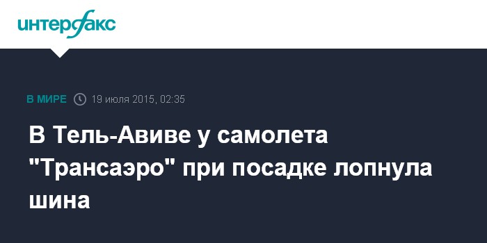 Москва. 19 июля. INTERFAX.RU - При посадке в международном аэропорте Бен-Гурион у следовавшего из Москвы Boeing-737 авиакомпании "Трансаэро" лопнула шина, сообщает израильская газета Haaretz.