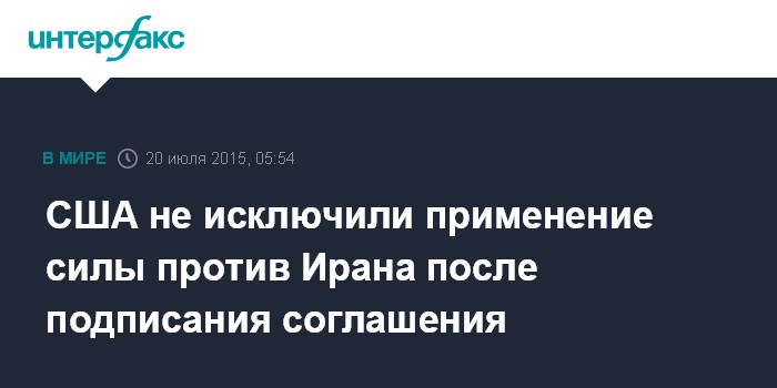Москва. 20 июля. INTERFAX.RU - Если Соединенные Штаты должны будут предотвратить создание Ираном ядерного оружия, то они не исключают возможность применения военной силы, а договоренность с Ираном по атому оставляет такую возможность открытой, заявил журналистам министр обороны США Эштон Картер.
