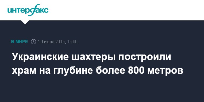 Украинские шахтеры построили храм на глубине более 800 метров