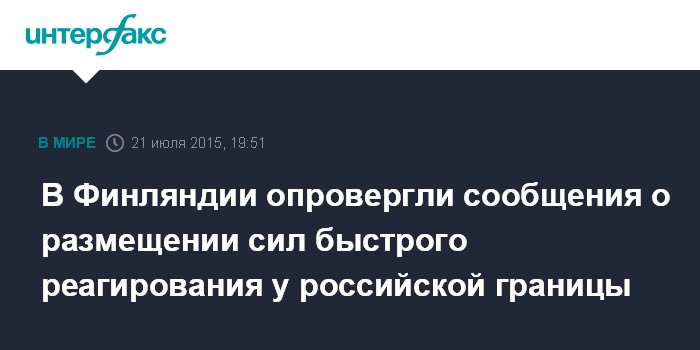 Как сообщил во вторник портал телерадиовещания Финляндии YLE, российские СМИ активно перепечатывали в последние дни статью из американского издания Defense News, что Финляндия планирует разместить силы быстрого реагирования близ границ с Россией и что якобы это сказал военному новостному каналу министр обороны Финляндии.