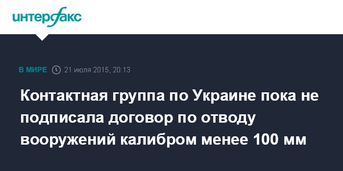 Контактная группа по Украине пока не подписала договор по отводу вооружений калибром менее 100 мм