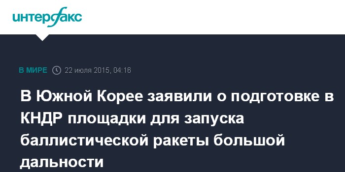 Москва. 22 июля. INTERFAX.RU - Северная Корея готовится к пуску новой баллистической ракеты, которая по дальности полета может превзойти Unha-3, запущенную в декабре 2012 года, считают в правительстве Южной Кореи.