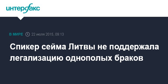Спикер сейма Литвы не поддержала легализацию однополых браков