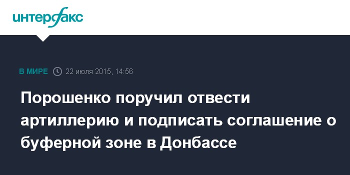Москва. 22 июля. INTERFAX.RU - Президент Петр Порошенко поручил представителям Украины в Контактной группе подписать соглашение о буферной зоне на территории Донбасса.