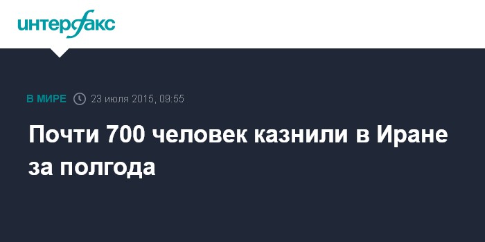 Москва. 23 июля. INTERFAX.RU - Почти 700 человек было казнено в Иране с начала 2015 года, говорится в опубликованном в четверг докладе правозащитной организации Amnesty International.
