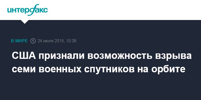 Москва. 24 июля. INTERFAX.RU - Американские военные не исключают возможности разрушения семи метеоспутников однотипных с космическим аппаратом DMSP-F13, взорвавшимся 3 февраля 2015 года, сообщает специализированный сайт со ссылкой на коммюнике 50-го Космического крыла Военно-воздушных сил США.