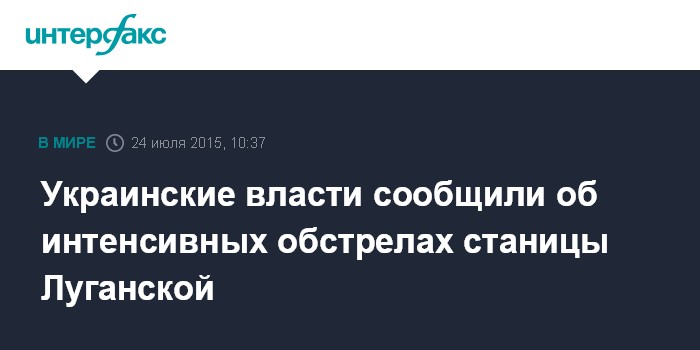 Москва. 24 июля. INTERFAX.RU - В минувший четверг интенсивные обстрелы станицы Луганской возобновились, в результате погиб украинский военнослужащий и получил ранение местный житель, сообщила в пятницу пресс-служба Луганской областной военно-гражданской администрации.