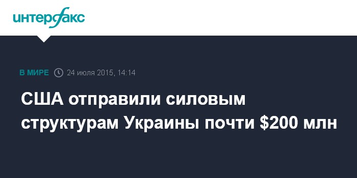 Москва. 24 июля. INTERFAX.RU - Сумма помощи США силовым структурам Украины составила около $200 млн, сообщил посол США в Киеве Джеффри Пайетт.