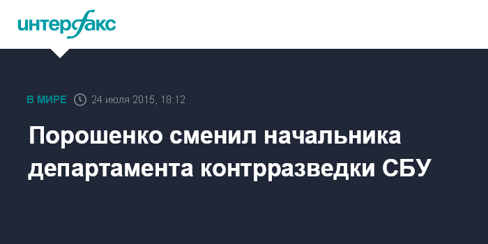 Москва. 24 июля. INTERFAX.RU - Президент Украины Петр Порошенко назначил начальником департамента контрразведки Службы безопасности Украины Виталия Найду.