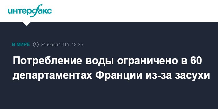 Москва. 24 июля. INTERFAX.RU - Ограничение на расход воды было введено в 60 из 101 департамента Франции из-за засухи, сообщает BBC.