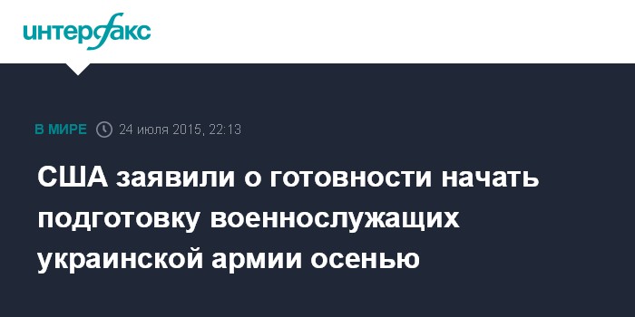 Москва. 24 июля. INTERFAX.RU - Американские военные инструкторы осенью 2015 года намерены приступить к реализации программы по подготовке военнослужащих украинской армии, сообщил в пятницу представитель госдепа США Марко Тонер.