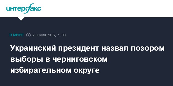 Москва. 25 июля. INTERFAX.RU - Президент Украины Петр Порошенко раскритиковал ситуацию в 205-м избирательном округе в Чернигове.