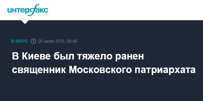 Москва. 26 июля. INTERFAX.RU - Неизвестные в ночь на воскресенье совершили в Киеве покушение на священника Украинской православной церкви Московского патриархата.
