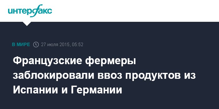 Москва. 27 июля. INTERFAX.RU - Французские фермеры перекрыли дороги из Испании и Германии, чтобы остановить ввоз иностранных товаров, так как конкуренция с ними привела местных производителей на грань банкротства, сообщает Yahoo News.