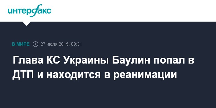 Москва. 27 июля. INTERFAX.RU - Глава Конституционного суда Украины Юрий Баулин попал в ДТП в Полтавской области и сейчас находится в больнице, сообщили агентству "Интерфакс" в пресс-службе суда.