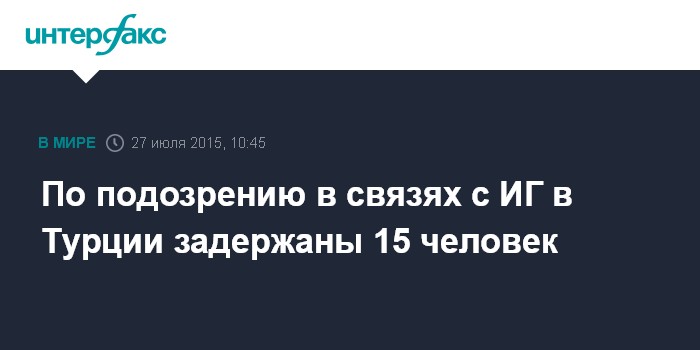 Москва. 27 июля. INTERFAX.RU - В Анкаре в ходе спецоперации полиции задержаны 15 предполагаемых членов группировки "Исламское Государство" (запрещенная в РФ экстремистская организация), сообщает в понедельник агентство Associated Press.