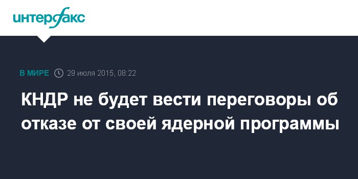 "КНДР не заинтересована в диалоге, который будет посвящен вопросам одностороннего и первоначального отказа и заморозки своей ядерной программы", - подчеркнул он.
