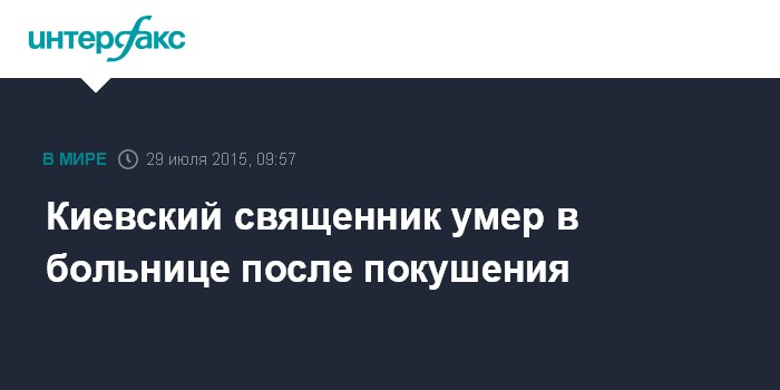 Москва. 29 июля. INTERFAX.RU - Клирик Киева священник Роман Николаев (Украинская православная церковь Московского патриархата) скончался на 41-м году жизни в среду утром после тяжелых огнестрельных ранений.