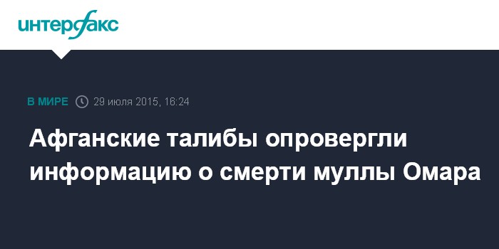 Москва. 29 июля. INTERFAX.RU - Представитель движения "Талибан" опроверг информацию о кончине главаря талибов муллы Омара, передает в четверг британский телеканал Sky News.