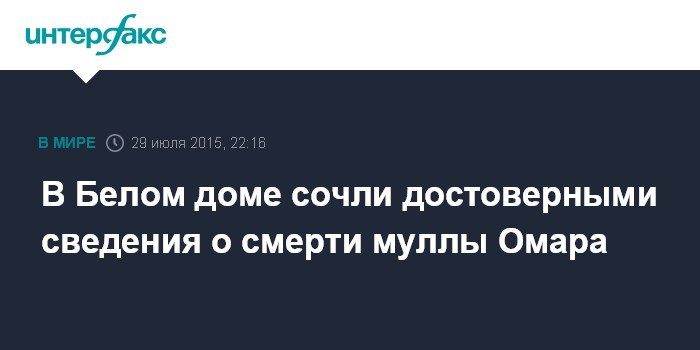 Москва. 29 июля. INTERFAX.RU - Белый дом считает сообщения о смерти лидера афганских талибов муллы Омара достоверными, сообщило в среду агентство Associated Press.
