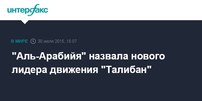 Москва. 30 июля. INTERFAX.RU - Заместитель скончавшегося накануне главаря афганских талибов муллы Омара Ахтар Мохаммед Мансур выбран новым лидером движения "Талибан", передает межарабский телеканал "Аль-Арабийя" со ссылкой на собственные источники.