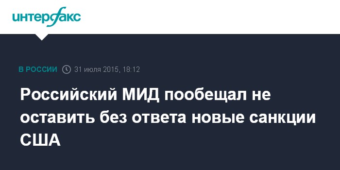 Москва. 31 июля. INTERFAX.RU - МИД России обвинил Соединенные Штаты в политике усиления конфронтации в связи с новыми санкциями в отношении российских граждан и компаний и предупредил, что эти действия не останутся без реакции со стороны Москвы.