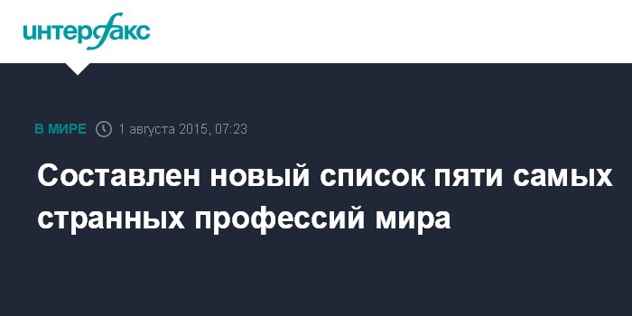Москва. 1 августа. INTERFAX.RU - Эстонское издание Postimees составило пятерку самых странных, на взгляд авторов, профессий, куда вошли Человек-зебра, обертыватель полиэтилена и подсадной пассажир такси.