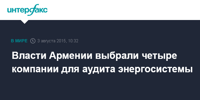 Власти Армении выбрали четыре компании для аудита энергосистемы