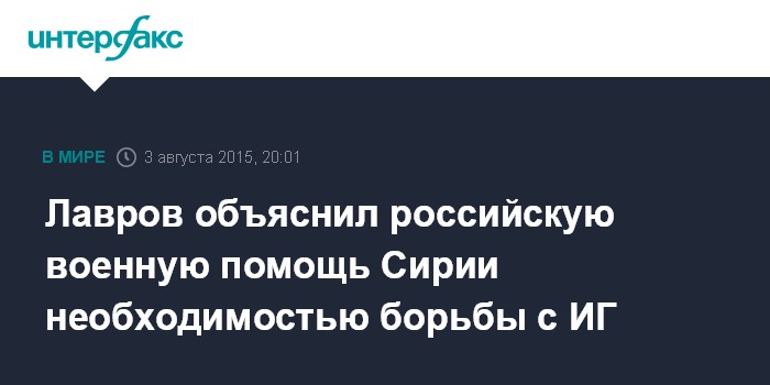 Лавров объяснил российскую военную помощь Сирии необходимостью борьбы с ИГ