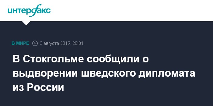 В сообщениях приводятся высказывания представителя МИД Швеции Юхана Тегеля, отметившего, что таким образом Москва отреагировала на недавнее выдворение со шведской территории российского дипломата.
