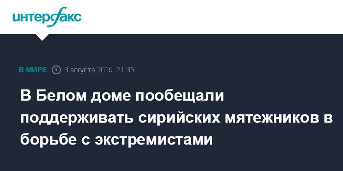 При этом представитель Белого дома признал, что пока сирийские правительственные войска не мешали операциям оппозиционеров, выступающим против экстремистских группировок. Как подчеркнул Эрнест, правительство Сирии "не должно вмешиваться" в эти военные операции.