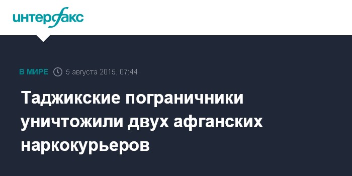 Москва. 5 августа. INTERFAX.RU -Таджикские пограничники за сутки трижды вступили в бой с афганскими наркоконтрабандистами, уничтожив двух из них и изъяв 54 килограмма наркотиков, сообщил в среду Центр общественных связей (ЦОС) Госкомитета нацбезопасности (ГКНБ) Таджикистана.