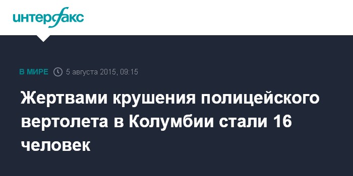 Жертвами крушения полицейского вертолета в Колумбии стали 16 человек
