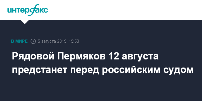 Рядовой Пермяков 12 августа предстанет перед российским судом