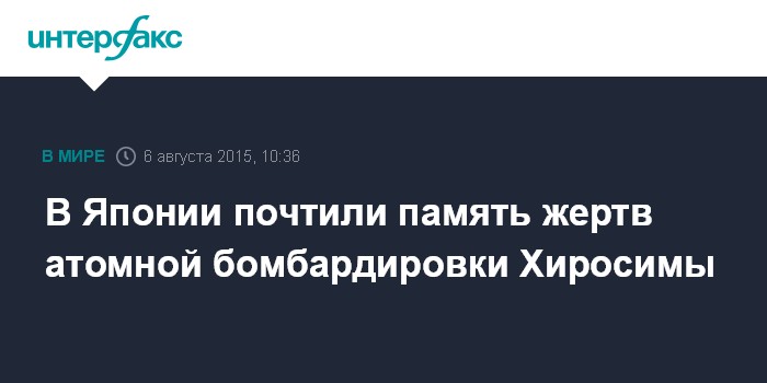 Москва. 6 августа. INTERFAX.RU - В японском городе Хиросима в четверг состоялась церемония памяти, посвященная 70-летию атомной бомбардировки США этого города в 1945 году, сообщает японское издание "Майнити".
